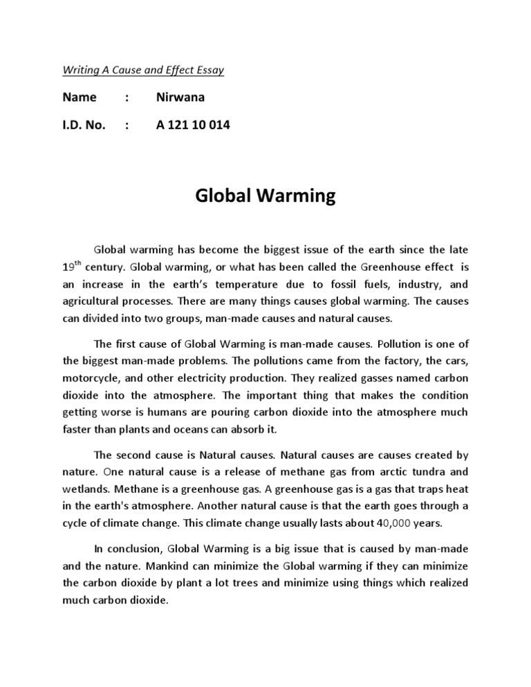 Types of Cause and Effect Essay At a basic level, these essays are of three types. 1. Effect-Focused Method The analysis is focused on one or multiple effects that the occurrence of an event has had. 2. Cause-Focused Method The analysis is focused on the different causes that lead to the event. 3. Causes and Effects-Focused Method As per the cause and effect essay definition, “It is an essay that examines a reason (cause) and its consequences (effect). However, the reason could be an event, action, or decision made”. Such essays are more common in high school and college students as they explore several causes and their effects · Here are some cause and effect essay topics for college students that you will really appreciate: Why did you choose your major? The causes and effects of World War II. Water vapors can cause a greenhouse effect. The causes and effects of Alzheimer’s disease. Multitasking causes an increase in stress